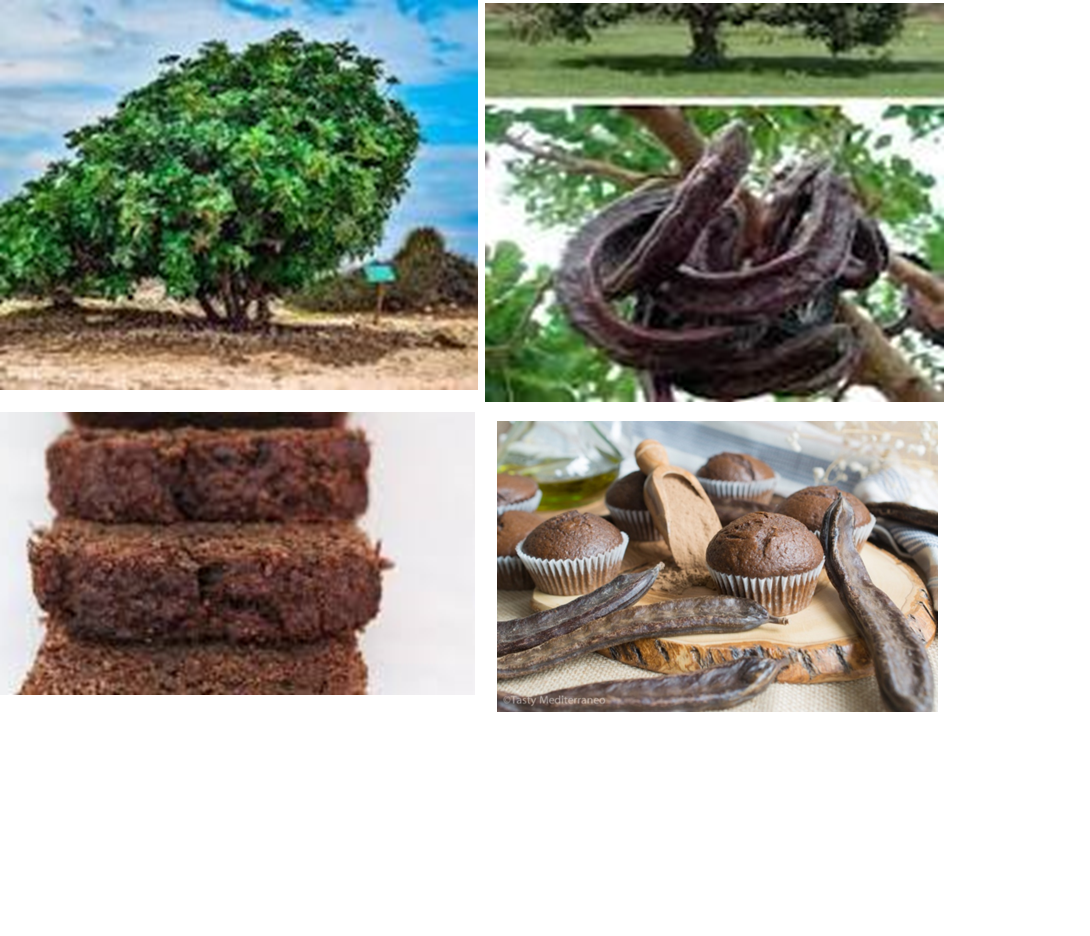 - Farine de caroube utilisée comme substitut du cacao.